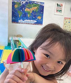 4~6 歳からは、アルファベットの学習も行います。書く練習に加え、その発音もしっかり練習します。基礎的なフォニックスとスペリングも学習していきます。また、よいマナーを身に付けること、お友達と仲良くすることなども大切なレッスンの一環として捉えています。